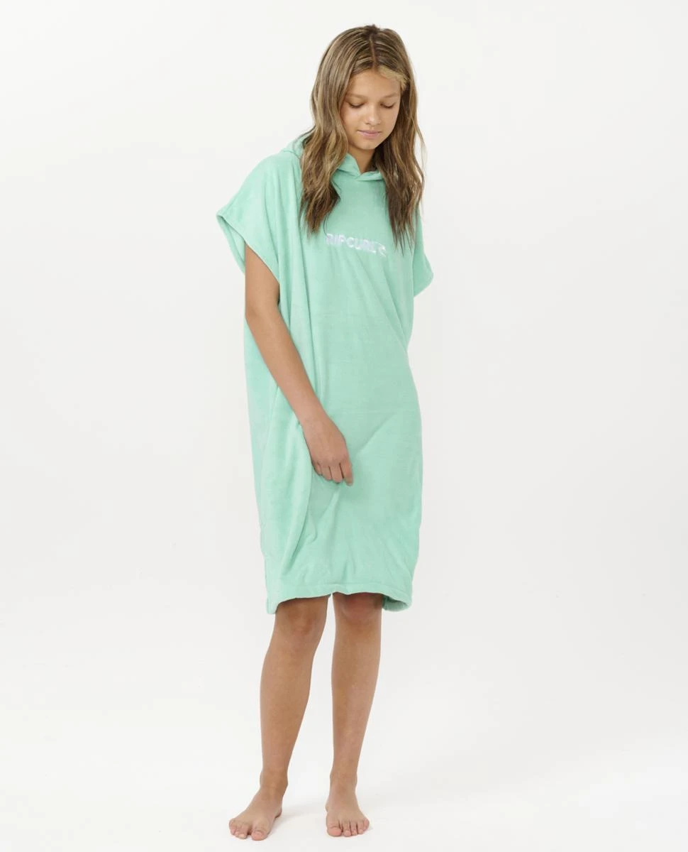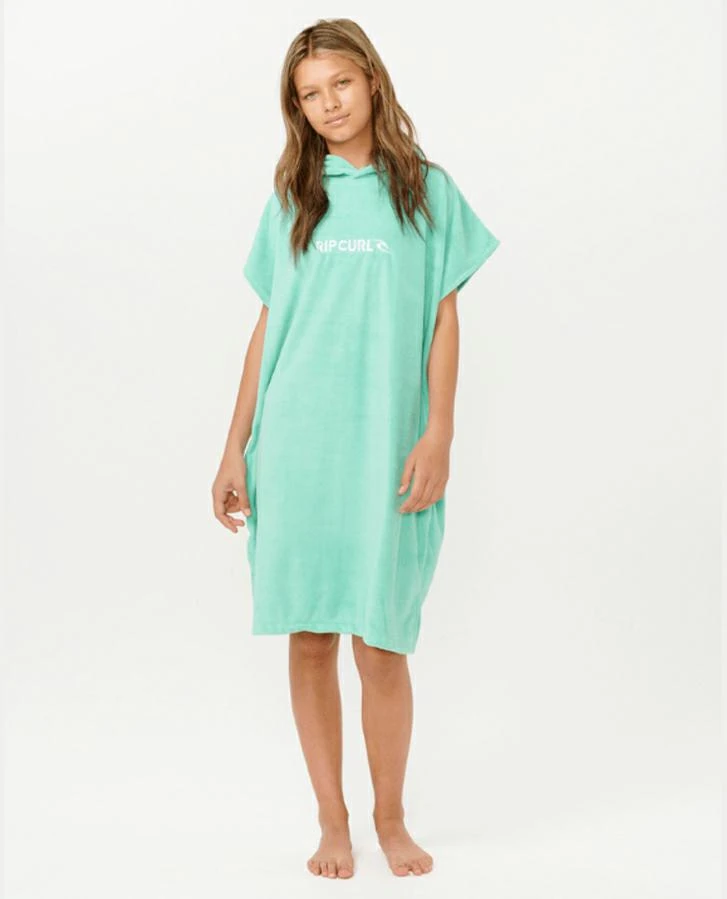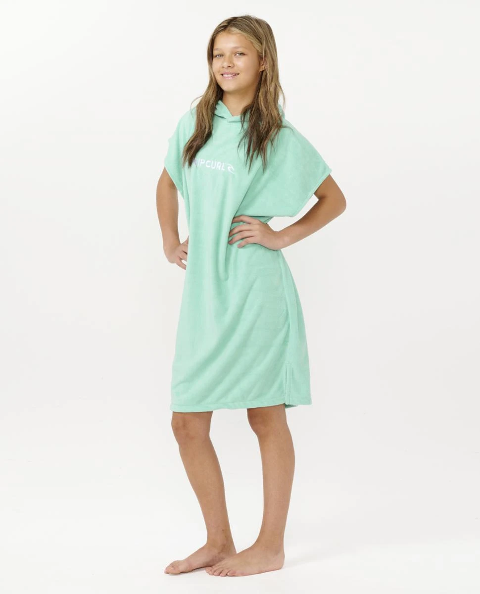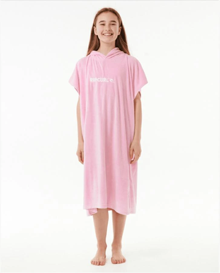 Keep young beach enthusiasts dry with the Classic Surf Hooded Towel for girls (8-14 years). This standard fit hooded towel with sleeves is designed to provide comfort and coverage. It features an embroidered chest logo and has a length of 90cm from the top shoulder point. Perfect for the beach or pool, it combines functionality with style.