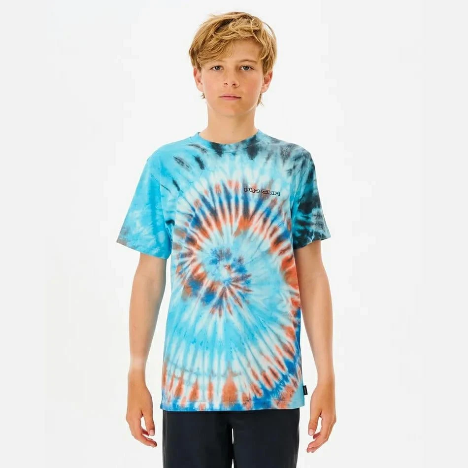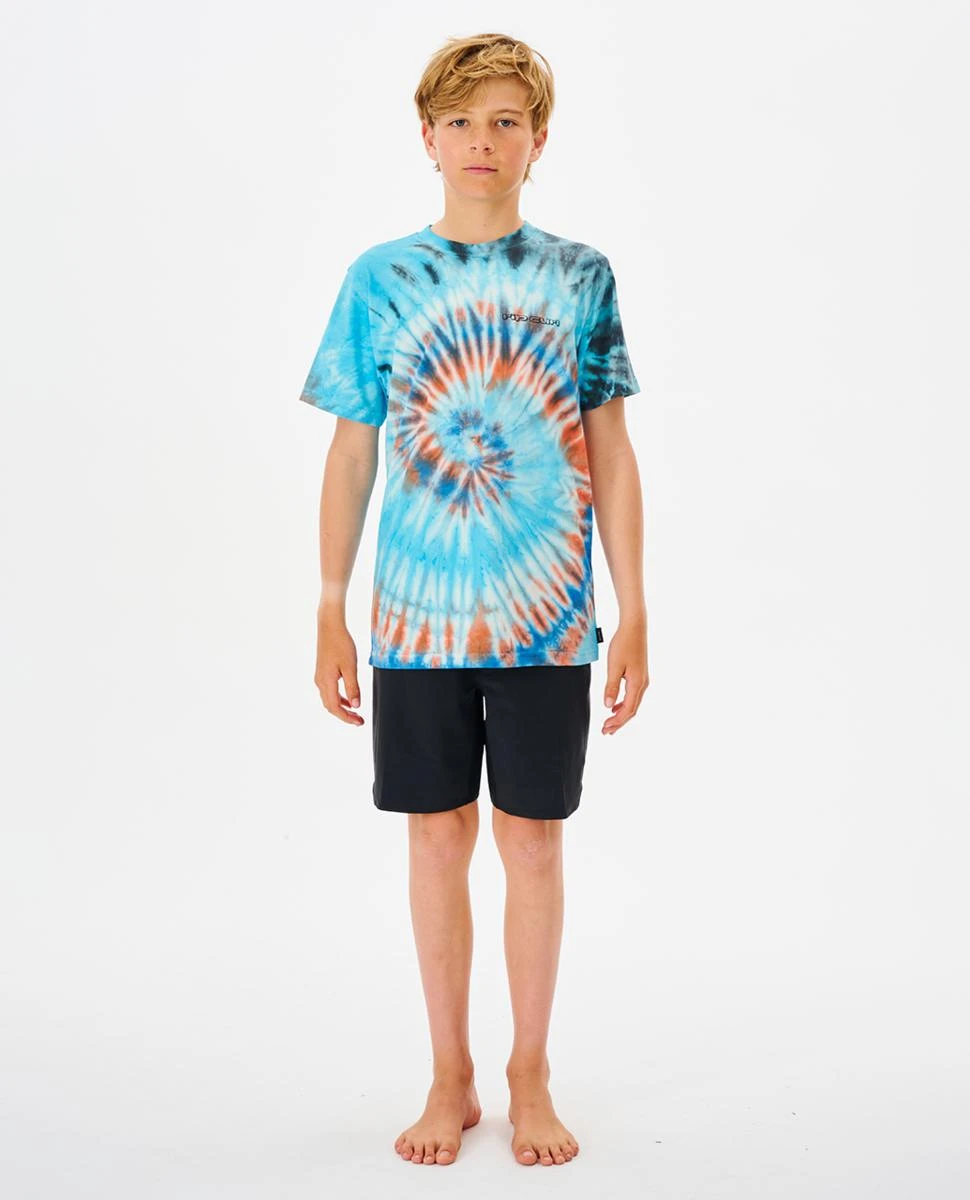 The Cosmic Tides Tie Dye Tee is a great boy’s short sleeve t-shirt made from a comfy and breathable cotton fabric. Designed in a standard fit for that classic everyday fitted shape. Detailed with front print and spiral tie dye effect.