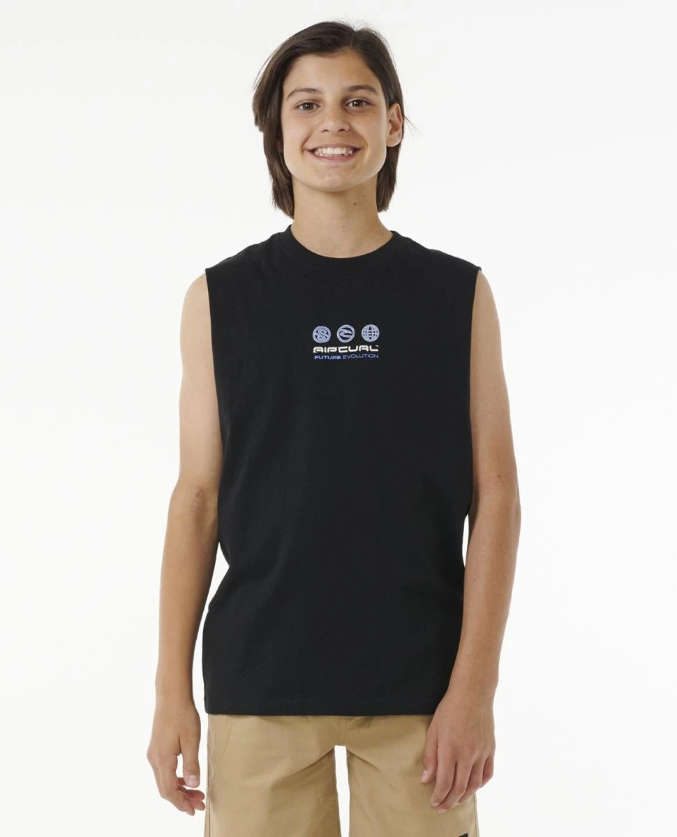 For the groms who crave excitement and style in their gear. The Future Evolution Muscle tee is a warm weather essential for boys 8-16 years, featuring a bold back and front print and 100% cotton construction.