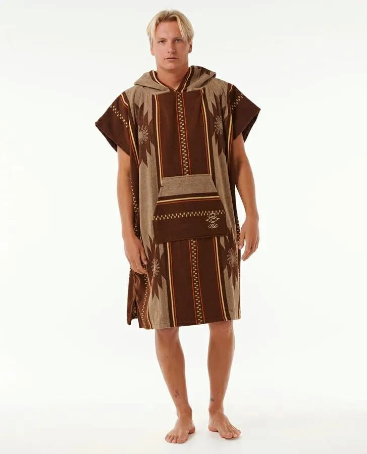 We are frothing the new Searchers Hooded Towel design soft cotton jacquard fabric ideal for changing and crying off, featuring an exotic jacquard stripe, kanga pocket and embroidered logo.