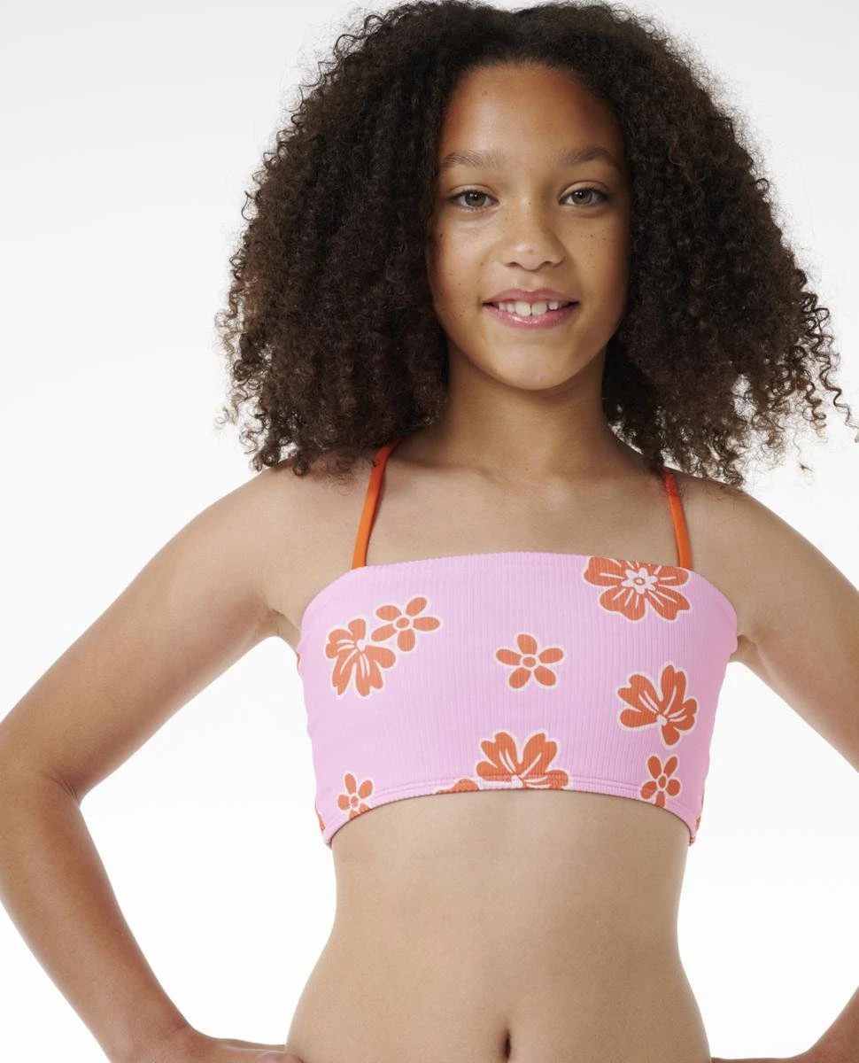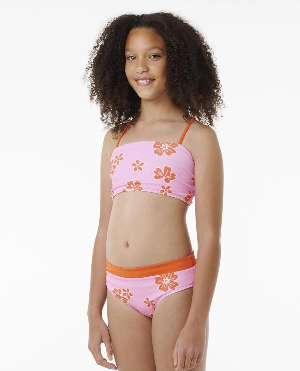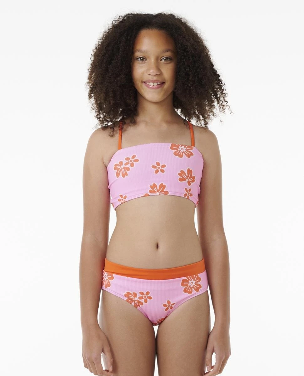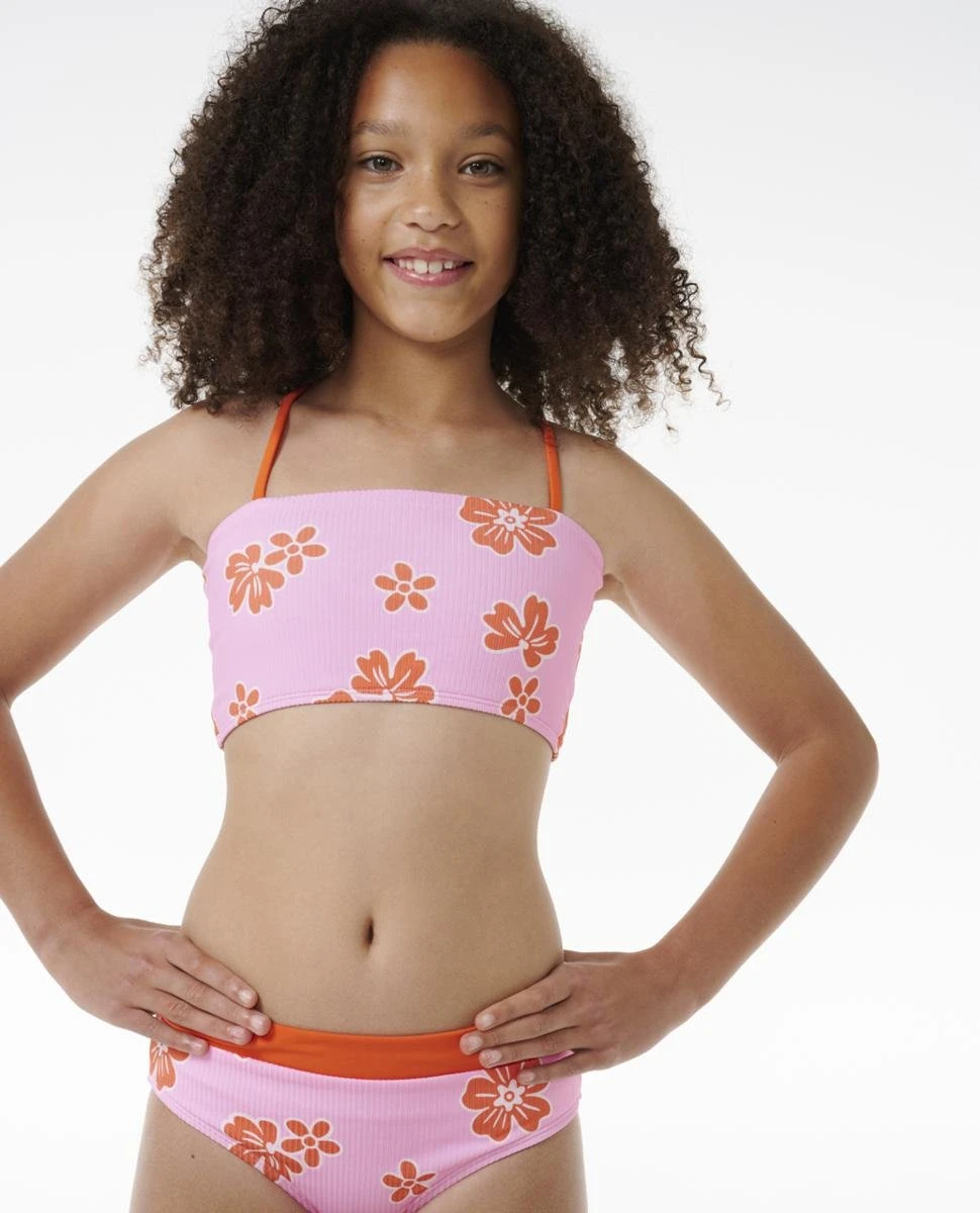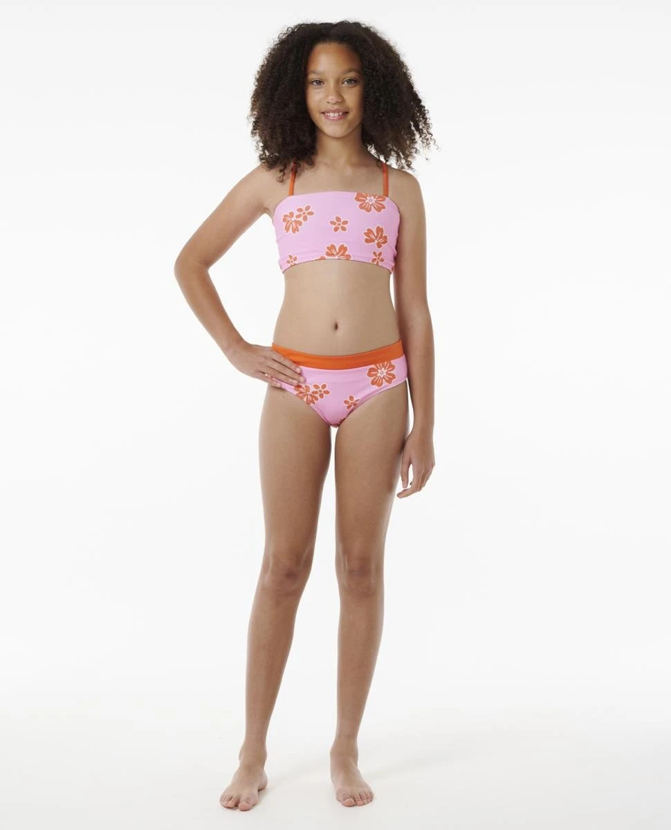 Make a splash with the Summer Solstice Bikini. This suit offers adjustable straps, a fun hibiscus print, full coverage, and durable fabric that will last all season. Perfect for girls aged 8 to 14 years.
