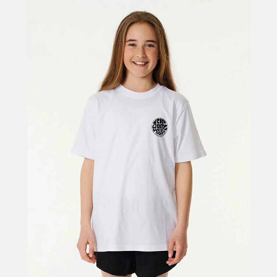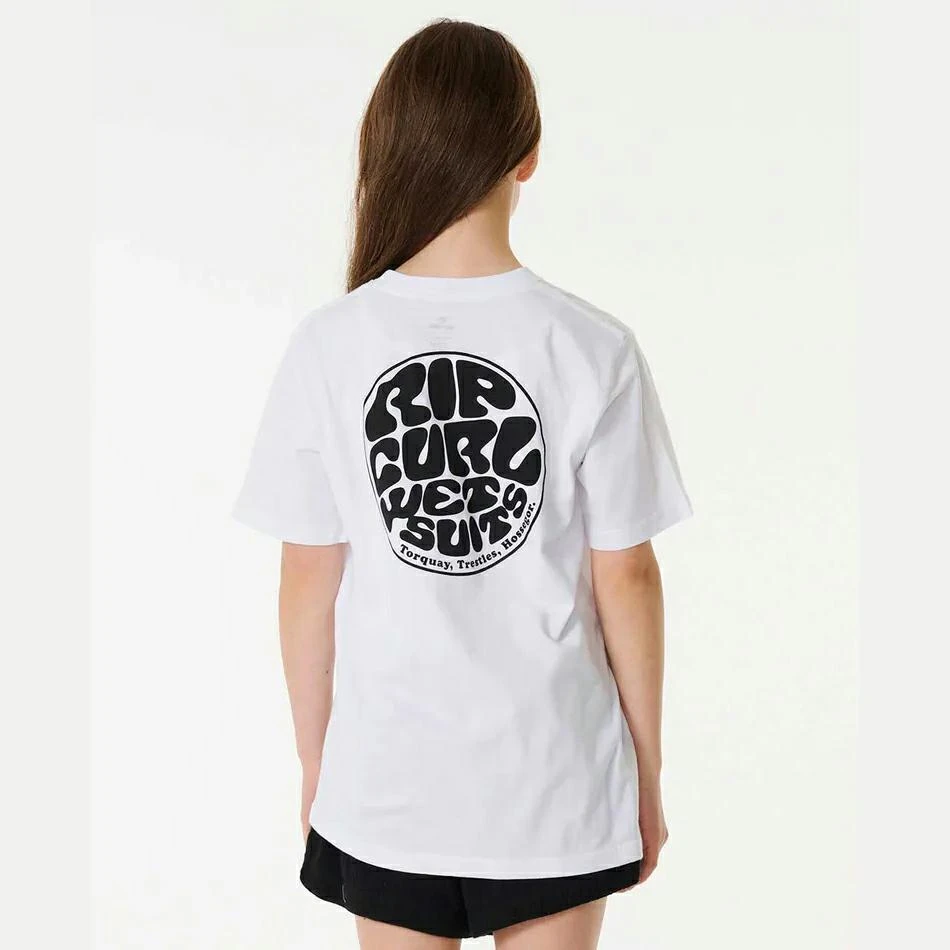 The Wetsuit Icon Tee is a stylish and comfortable choice for kids aged 8 to 16 years. Made from organic cotton jersey fabric, weighing 160G, this t-shirt offers a standard fit. The woven flag label adds a touch of detail, while the front and back print enhance its overall design. Whether for everyday wear or active days, this t-shirt combines style and comfort.